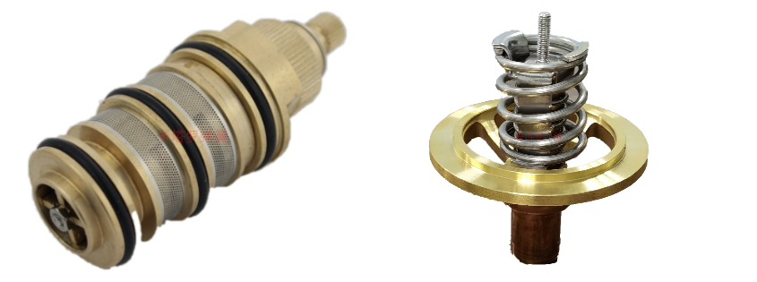 石蠟感溫組件的工作原理是將高純度的特殊石蠟灌進一個細小的銅容器中,容器口蓋一片橡膠傳感片。由于溫度的變化,容器中的石蠟體積也隨之增縮,再通過容器口的傳感片帶動彈簧推動活塞來調(diào)節(jié)。